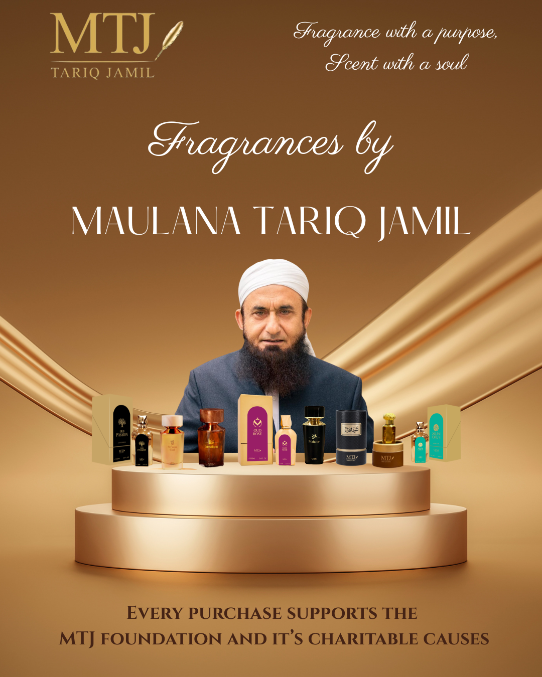 MTJ Fragrances, inspired by Maulana Tariq Jamil’s teachings, blends elegance with purpose. Each fragrance is crafted to evoke serenity and sophistication while supporting the MTJ Foundation. Your purchase helps uplift lives through charitable initiatives and Islamic education. Experience the harmony of luxury and compassion with every spray.