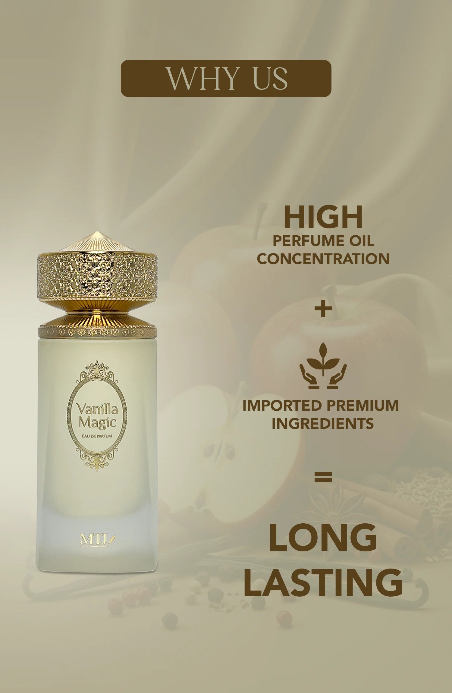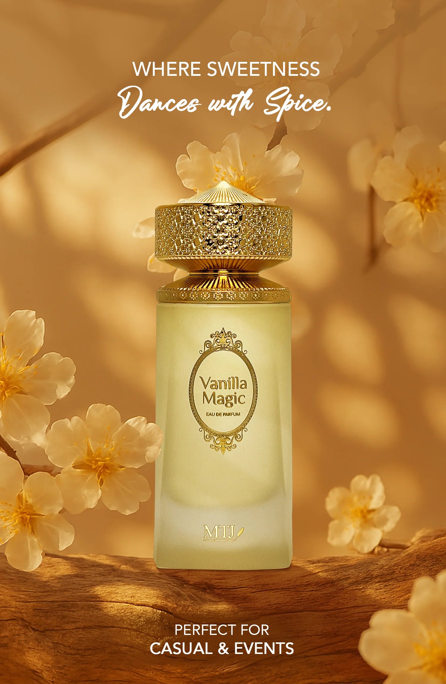 Step into a world of irresistible charm with Vanilla Magic — a unisex fragrance that balances warmth and spice with fresh, seductive layers. It opens with a spicy burst of pink pepper, cardamom, and violet leaves, immediately awakening the senses. The heart reveals a crisp, modern blend of apple, lavender, and sage, adding a refreshing yet sophisticated twist. Anchored by a creamy base of vanilla, cedarwood, amber, and musk, this scent lingers with a rich, magnetic trail.